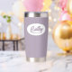 Verschenken Sie Ihre Hochzeitsjury mit diesem trendigen und personalisierten, rostfreien Edelstahl, Thermalwäscher mit ihrem Namen in stilisierter Schrift in einem weißen ovalen Design. Hintergrundfarbe und Skript ist eine lila Farbe. Personalisieren Sie Ihren Wärmeleiter, indem Sie den Namen der Brautjungfrau mit dem gewünschten Namen bearbeiten und ersetzen. Erhältlich in vielen beliebten Hochzeitsfarben.
