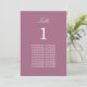 Mauve Table Card für die Gästekarte, leicht in der Online-Personalisierungsvorlage zu personalisieren, um die Tischnummer für die entsprechende Tabelle und die Namen der Gäste für diese Tabelle anzuzeigen. Das Design kopiert sich automatisch auf die andere Seite der Karte, um den Gästen zu helfen, ihren Tisch von beiden Seiten des Tisches zu finden. Diese schlicht minimalistische, stilvolle Tischkarte bietet Platz um die Textelemente und ermöglicht so die Wahl der Anzeigemethoden wie das Aufhängen oder Framing der Karte.