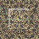 Dieser Stoff ist mit Krähen, Libellen und Käfer in Lila- und Grautönen und Blume und Blätter in einem bräunlichen Hintergrund gestaltet.
