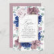 Mauve und Navy Blumen Elegante Taufe Einladung