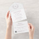 Elegant in einer Hochzeitseinladung mit einem sauberen und zeitlosen Design mit Ihrem Monogramm in einem Kranz-Wappen. Verwenden Sie die Vorlage, um einen QR-Code auf der angeschlossenen RSVP-Karte zu generieren.