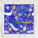 Farbenfrohe dreiköpfige, menorahs und Sterne auf einem blauen Hintergrund.