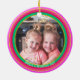 Mit diesem lebendigen rundum gestreiften Ornament nehmen Sie Ihren bunten Weihnachtsbaum mit Ihrem personalisierten ersten Monogramm auf der Vorderseite und einem Foto auf der Rückseite mit einer benutzerdefinierten Beschriftung auf. Helle Farbtöne wie Rosa, Orange, Grün und Blau. Eine moderne, maximalistische Touch für einen rosa Weihnachtsbaum, die aber jedem hellen Urlaubsthema mehr Farbe verleiht.