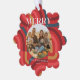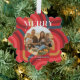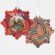 Diese Retro, maximalistisch, kitsch und modern "Frohe Weihnachten" Weihnachts-Weihnachtsgeschenk-Foto-Schmuckkarte weist einen roten Hintergrund mit geometrischen Mustern auf. Auf der Rückseite befindet sich ein goldener Hintergrund aus Imitaten/Fake mit geometrischen Mustern. Personalisieren Sie es für Ihre Bedürfnisse. In meinem Geschäft finden Sie passende Produkte.