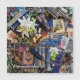Genießen Sie dieses buchhalterische und maximalistische Design mit Jugendstil-Buchstäbchen und -decken, einer Vintagen Schreibmaschine, einem Federstift, weißen Blume, antiken Weihnachtskarten des Weihnachtsmannes und vielen schreibbezogenen und winterlichen Ferienobjekten.