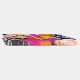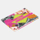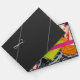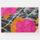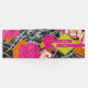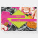 Neongelbe Diamantform über rosa Orange und pfirsichfarbene, moderne Blumen mit dunklem Marmordesign. Namen in Neongelb über heißen rosa Balken. Der übrige Text ist schwarz.