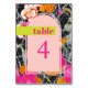 Hellrosa Bogenform über rosa Orange und pfirsichfarbene moderne Blumen mit dunklem Marmordesign. "Tabelle" Text in heiß rosa über neongelben Bar. Die Zahl ist heiß rosa.