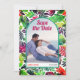 Mit dieser beeindruckenden Ankündigung Datum freihalten Karte können Sie in eine Welt voller Farben und tropischer Farben eintauchen. Die Karte zeigt einen atemberaubenden Boho-Bogen, der mit dem Foto des Ehepaares geschmückt ist und einen maximalistischen Stil aufweist und eine persönliche Touch schafft. Hinter dem Bogen verbirgt sich ein lebendiges Muster tropischer Blätter, das einen Farb- und Energiesturm verleiht. Der Begriff "Save the Date" wird elegant in einer faszinierenden Kombination aus Magenta lila und lebendig orange dargestellt, was es unmöglich macht, es zu verpassen. Die Karte enthält das Datum und die Namen des Ehepaares, um alle notwendigen Angaben zu machen. Auf der Rückseite finden die Gäste einen bequemen QR-Code, mit dem sie mühelos nach weiteren Informationen suchen können.