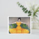 Eine kunstvolle Postkarte mit dem Gemälde, Frau in gelbem Kleid (1899), von Max Kurzweil (1867-1916), einem österreichischen Maler und Drucker. Eine Führungspersönlichkeit in der Wiener Sezessionistischen Bewegung. Ein schönes Porträt einer Frau, die auf einer farbenfrohen grünen Sitzbank sitzt.