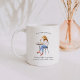 Celebrate a May birthday with this personalized birth month mug featuring a soft, storybook-style watercolor illustration inspired by spring café moments. The artwork shows an adult woman seated at a small café table, styled in relaxed layers with subtle pops of color that feel fresh, calm, and seasonal.