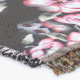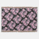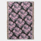 Diese Blumengrafik wird in einem Rautenmuster dargestellt, mit Haufen von Blüten, Blüten und Blätter von Blume, in gedämpften Farben, Rosa, Fuschia, Lavendel, Lilve, Grün und Weiß, vor einem Hintergrund von Schwarz.