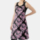 Diese Blumengrafik wird in einem Rautenmuster dargestellt, mit Haufen von Blüten, Blüten und Blätter von Blume, in gedämpften Farben, Rosa, Fuschia, Lavendel, Lilve, Grün und Weiß, vor einem Hintergrund von Schwarz.