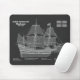 Das Schiff der Maisblume plant. Das berühmte Schiff aus dem 17. Jahrhundert, das die Pilger nach Amerika transportierte. Schiffskonzept Zeichn von Plänen oder Schematiken mit der Kontur für die Entwicklung von Maisblumen