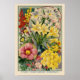Wunderschöne Abbildung aus einem Vintagen Samenkatalog mit Freesias, Kolumbin und anderen farbenfrohen Blume. Ideal für den Gärtner!