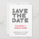 Vergnügen und sonderbare Hochzeit speichern Sie das Datum Ankündigung. Dieses moderne und stilvolle Design enthält den Text "Save the Date" in fett inspiriert, geometrisch formatierter Typografie und bearbeitbaren Textfeldern für Ihre Details in einer modernen Schrift. Karten werden für ein vertikal vollblutendes Foto zu einem Platzhalter umgeschaltet. Sie können dieses Design einfach an Ihren Stil anpassen, indem Sie auf "Anpassen" klicken, um zum Design-Tool zu gelangen und Ihren eigenen Text oder Ihre eigenen Details hinzuzufügen.