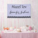 Wünschen Sie Ihre Lieblingsperson Mazel Tov oder Glückwünsche mit dieser kundengebundenen Fahne. Fahne schließt eine schöne dekorative untere Grenze ein. Fahne ist für alle Arten Feiern groß: Abschlüsse, Schläger mitvah, Dusche, Verlobung, Jahrestag, Hochzeit und mehr. Ändern Sie die Hintergrundfarbe, Schriftartfarbe, Schriftartart zur Art Ihrer Wahl.