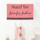 Wünschen Sie Ihren Lieblings-Person Mazel Tov oder Glückwunsch mit diesem maßgeschneiderten Banner. Banner enthält einen schönen dekorativen unteren Rand. Banner ist ideal für alle Arten von Feiern: Abschlüsse, Fledermaus Mitvah, Dusche, Verlobung, Jubiläum, Hochzeit und mehr. Ändern Sie die Hintergrundfarbe, die Farbe des Schriftartes, den Stil des Schriftartes in den gewünschten Stil.