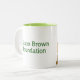 Diese 2 getonte Tasse kennzeichnet einen Spitze-einBooart Maurer Brown, das Grundlage eine Seite und den Grundlagennamen auf der anderen betreffen.