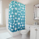 Ein Muster mit retroblauen geometrischen Formen, die in einem Raster angeordnet sind, und mit Kreisen und Halbkreisen, die von Licht zu Dunkel variieren. Das Design schafft einen optischen Täuschungseffekt mit seiner repetitiven und Mitte des Jahrhunderts angeordneten Anordnung.