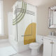 Ein abstraktes Design, inspiriert durch die abstrakte. Minimalismus der 50er Jahre. Kreise und Linien in Gold und Olivgrün.