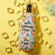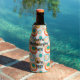 Diese Flasche cooler hat ein modernes Design von konzentrischen Kreisen in Gold, Orange und Türkis auf weißem Hintergrund.