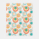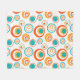 Dieses mittelschwere Vlies-Deckengewebe hat ein modernes Design aus konzentrischen Kreisen in Gold, Orange und Türkis auf weißem Hintergrund.