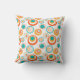 Dieses Kissen hat ein modernes Design von konzentrischen Kreisen in Gold, Orange und Türkis auf weißem Hintergrund.