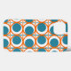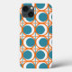 Dieses Handy Gehäuse hat ein modernes Design von offenen orangen Kreisen mit festen aquamarinen Kreisen, die durch das Muster laufen, mit aquamarinen vertikalen Linien und orangefarbenen horizontalen Linien.