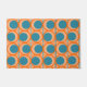 Dieses Türmchen hat ein modernes Design von offenen orangefarbenen Kreisen mit festen aquamarinen Kreisen, die durch das Muster verlaufen, mit aquamarinen vertikalen Linien und orangefarbenen horizontalen Linien.