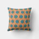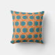Dieses Kissen hat ein modernes Design von offenen orangefarbenen Kreisen, mit festen aquamarinen Kreisen, die durch das Muster laufen, mit aquamarinen vertikalen Linien und orangefarbenen horizontalen Linien.