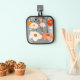 Orange, Scharlach, Weiß und sehr blassrosa Blume zeigen sich schön auf einem grauen, gemischten Medienhintergrund. Es ähnelt einem modernen Blumendesign aus der Mitte des Jahrhunderts aus den 1950er Jahren oder dem 60er. Retro, und sehr stilvoll!