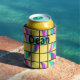 Dieses kann kühler hat ein modernes Design aus halbmondförmigen Monden, die horizontal in drei Farben unterteilt sind, rosa, blau, lavender oder seafoam, in zwei Teile geteilt und auf einem Gitter mit gelbem Hintergrund verstreut. Wenn Ihnen das Design gefällt, aber verschiedene Farben will, schreiben Sie mir.
