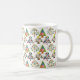 Diese Tasse hat ein modernes Design von Weihnachtsbäumen in verschiedenen Stilen. Eine hat ein Gitter mit Rechtecken mit innen liegenden Sternexplosionen. Ein anderer hat abgerundete Rechtecke mit kleineren Rechtecken im Inneren. Ein Drittel hat gekrümmte Linien mit Sternen. Der letzte Baum ist ein Dreieck mit anderen kleineren Dreiecken im Inneren
