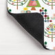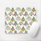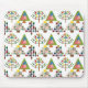 Dieses Mauspad hat ein modernes Design von Weihnachtsbäumen in verschiedenen Stilen. Eine hat ein Gitter mit Rechtecken mit innen liegenden Sternexplosionen. Ein anderer hat abgerundete Rechtecke mit kleineren Rechtecken im Inneren. Ein Drittel hat gekrümmte Linien mit Sternen. Der letzte Baum ist ein Dreieck mit anderen kleineren Dreiecken im Inneren
