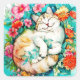 Meadow Blossom Cat Bliss Wasserfarbe Quadratischer Aufkleber