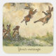 Meadow Matchup Playful Hares in a Meadow Quadratischer Aufkleber