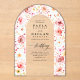 Celebrate your love with this dreamy acrylic wedding invitation, perfect for a spring or summer celebration. Featuring delicate watercolor wildflowers in blush pink, sage green, golden yellow, soft orange, and white, the design is framed by a shimmering gold arch — creating a timeless space for your wedding details.