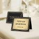 Compliment black and gold party decorations with elegant personalized name and table number place cards. To use as escort cards, set on a table near the entrance for guests to pick up and take to their seats, eliminating the need for a separate seating chart. The meal choice, event title and date are simple to customize or delete. The colors and font styles are easy to change with the Zazzle Design Editor tool. The modern black and gold design features a faux foil background, a stylish striped border and classic vintage art deco typography. These elegant place cards add a unique customized touch to a celebration with a dinner reception or luncheon. Please note that these cards are not pre-folded and the gold is printed gradient color with slightly darker edges, not metallic foil.