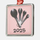 Fotograph of measuring spoons fanned out on pink (customizable) background. Year/text customiizable.