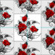 Mechanical Crescent with Red Roses Stoff