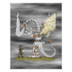 In dieser Fantasiekunst von Richard H. Fay steigt ein dampfbetriebener mechanischer Drache auf und bläst Dampf. Diese Arbeit erschien ursprünglich als eine Schwarz-Weiß-Linie zeichnend in Ausgabe 36 von BEYOND CENTAURI.