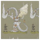 In dieser Fantasiekunst von Richard H. Fay steigt ein dampfbetriebener mechanischer Drache auf und bläst Dampf. Diese Arbeit erschien ursprünglich als eine Schwarz-Weiß-Linie zeichnend in Ausgabe 36 von BEYOND CENTAURI.