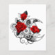 Kontur, halbmondmondförmig mit Gängen, mit rote Rosen mit schwarzen Stielen und Blätter auf weißem Hintergrund dekoriert. Steampunk