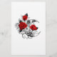 Kontur, halbmondmondförmig mit Gängen, mit rote Rosen mit schwarzen Stielen und Blätter auf weißem Hintergrund dekoriert. Steampunk