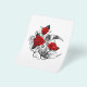 Kontur, halbmondmondförmig mit Gängen, mit rote Rosen mit schwarzen Stielen und Blätter auf weißem Hintergrund dekoriert. Steampunk