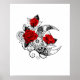 Kontur, halbmondmondförmig mit Gängen, mit rote Rosen mit schwarzen Stielen und Blätter auf weißem Hintergrund dekoriert. Steampunk
