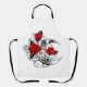 Kontur, halbmondmondförmig mit Gängen, mit rote Rosen mit schwarzen Stielen und Blätter auf weißem Hintergrund dekoriert. Steampunk