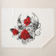 Kontur, halbmondmondförmig mit Gängen, mit rote Rosen mit schwarzen Stielen und Blätter auf weißem Hintergrund dekoriert. Steampunk