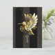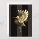 Steampunk, antiker, goldener, mechanischer Kolibri mit Messinggetrieben und silberner Taste auf gestreiftem, braunem Hintergrund. Goldvogel.