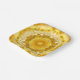 Teller mit einem Zwölfpunkt, Batik-Effekt, Medaillonmuster, in dunklen bis hellen Senfgolden und goldgelb